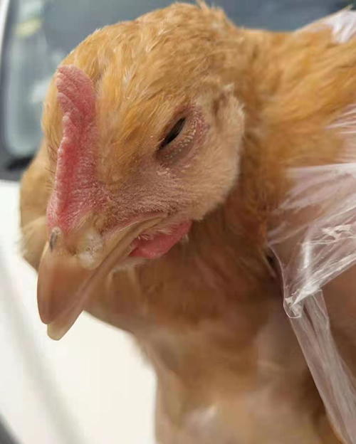 發(fā)病初期發(fā)燒、流清鼻汁。2-3天后出現呼嚕與咳嗽,常有甩頭動作。1-3天后少數雞出現眼、眶下竇、顏面浮腫,浮腫多為單側。產蛋雞產蛋下降5-30%。當混感慢呼、大腸桿菌、傳喉等疾病時,會出現較高的死亡率。