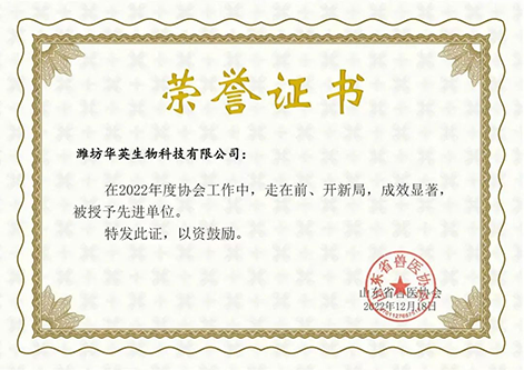 12月18日,山東省獸醫協會發布《關于表彰 2022 年度山東省獸醫協會先進單位、 先進工作者的通報》,濰坊華英生物科技有限公司獲得先進單位、公司董事長張勇先生獲得先進工作者榮譽稱號。