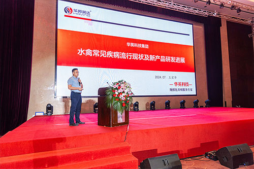 在華英科技承辦的禽病防控主題專場,集團研發(fā)總監(jiān)王宏華博士,針對《水禽常見疾病流行現狀及新產品研發(fā)進展》做主題報告。