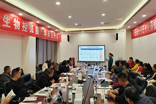 水產事業部經理陳夢迪做《噬菌體生物防控弧菌在對蝦養殖中的應用》主題報告,聚焦對蝦養殖中弧菌這一關鍵問題,強調弧菌對對蝦養殖的嚴重危害,闡述噬菌體生物防控手段,為水產養殖發展提供思路。此外,公司創建“華英細菌服務”項目,實現“0”元搭建塘口實驗室,為廣大用戶提供細菌管家定向服務這一舉措,引起了客戶的廣泛關注。
