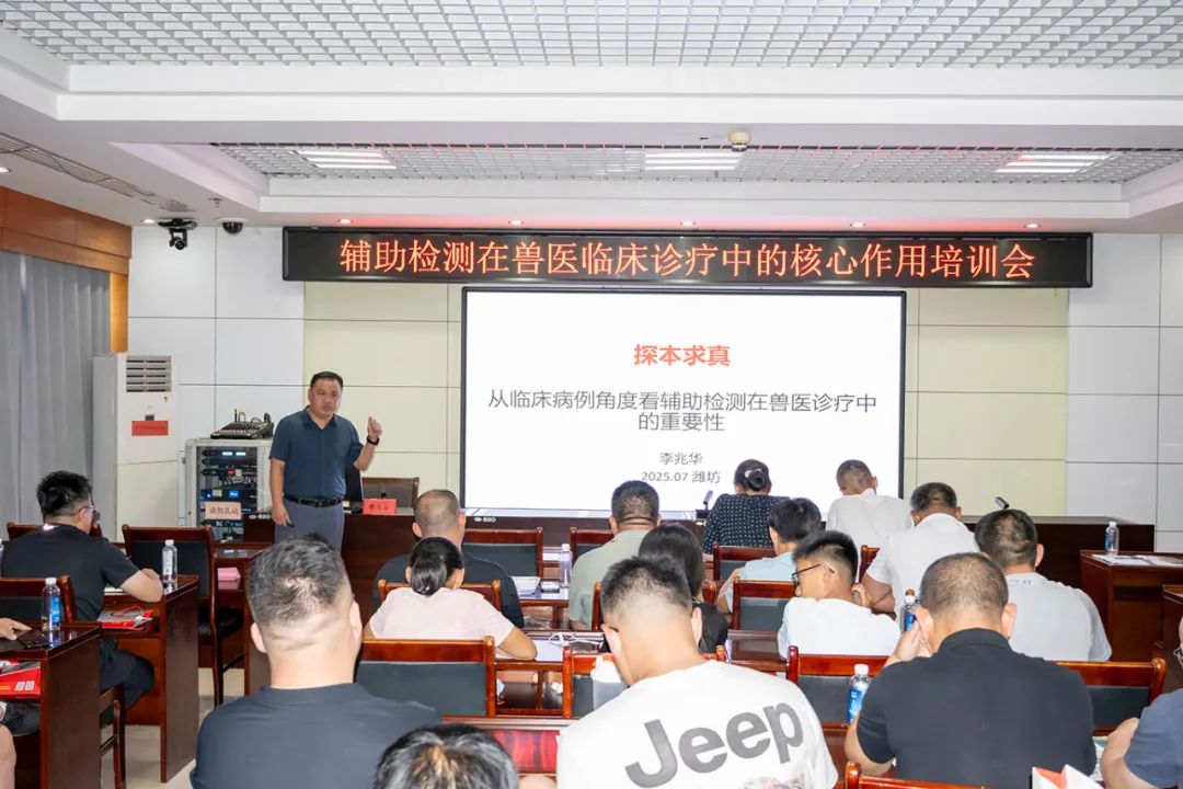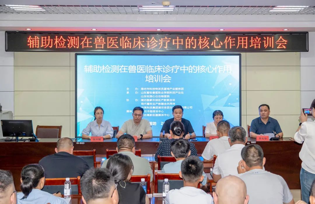 7月15日下午,由濰坊市科技特派員蛋雞產業服務團主辦、濰坊華英生物科技有限公司協辦的《輔助檢測在獸醫臨床診療中的核心作用培訓會》在山東畜牧獸醫職業學院(山東牧院)隆重舉行。本次會議旨在推動獸醫輔助檢測技術的創新與應用,共同探討獸醫臨床診療中的前沿技術與實踐應用,助力畜牧產業高質量發展。