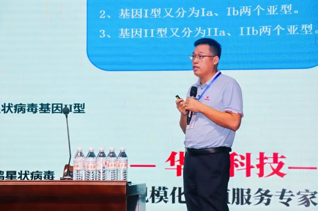 華英科技集團研發總監王宏華博士在會議上作《2025年鵝病流行動態及防控新技術》的主題報告,詳細介紹了當前鵝病流行趨勢及華英科技集團在疾病防控領域的最新研究成果,包括漿膜炎防控、鵝痛風防控、疫病快檢等核心技術,為行業提供了切實可行的解決方案。