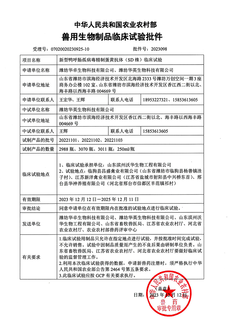 結(jié)合華英科技的最新研究成果,王博士在報告中展示了公司在水禽卵黃抗體、動物疫病快檢、功能性益生菌研究等疫病防控及無抗養(yǎng)殖領(lǐng)域的技術(shù)突破與產(chǎn)品研發(fā)進(jìn)展,并分享了多項(xiàng)已進(jìn)入臨床或注冊階段的新獸藥進(jìn)展,包括新型鴨呼腸孤病毒精制蛋黃抗體(SD株)、鴨傳染性漿膜炎三價精制蛋黃抗體(1型SC02棟+2型SD03株+6型HN01株)等。