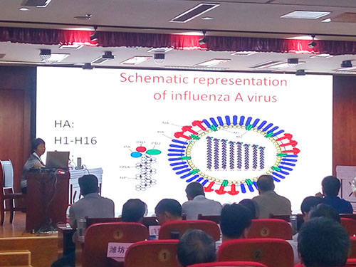 原山東省農科院畜牧獸醫研究所所長、山東省政府畜牧獸醫專家顧問團成員張秀美做動物疫病流行趨勢、科學養殖技術、安全用藥知識專題講座。
