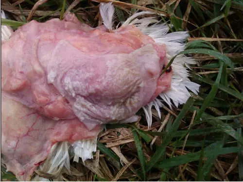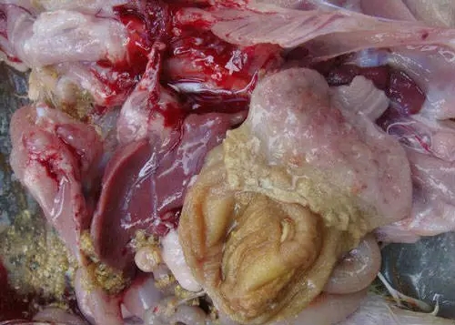 嗉囊內(nèi)有白色麩皮樣假膜