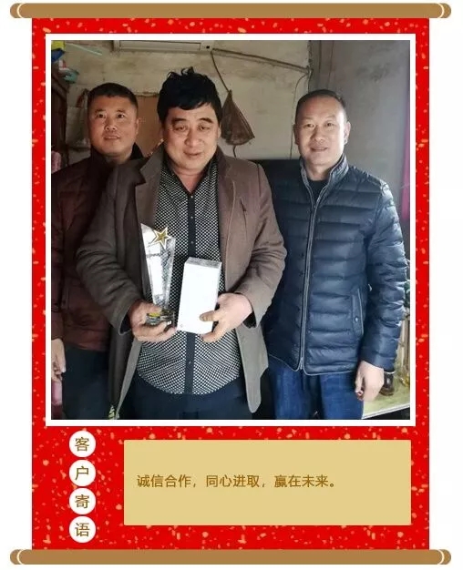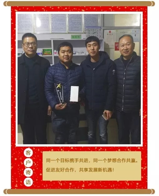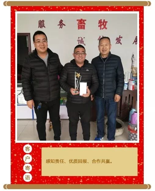 新春走基層之拜訪最佳合作伙伴 華英科技 公司動(dòng)態(tài) 新年伊始,華英生物科技集團(tuán)總經(jīng)理王炳亮、銷售總監(jiān)韓京杰奔赴在各個(gè)市場(chǎng),代表集團(tuán)公司為2017年度華英生物、中牧利德藥業(yè)部分最佳合作伙伴送去新春?jiǎn)柡蚺c祝福。 輝煌的2017已悄然離去,充滿機(jī)遇與挑戰(zhàn)的2018已然來臨。 2017,我們攜手共贏,收獲累累碩果; 有了你們的支持與肯定,才更加堅(jiān)定了我們不斷前進(jìn)的腳步; 2018,我們不忘初心、華章續(xù)奏,共贏璀璨! 上一篇: 一路同行,感恩有你下一篇: 2月7日我國(guó)部分地區(qū)雞蛋、淘汰雞價(jià)格匯總