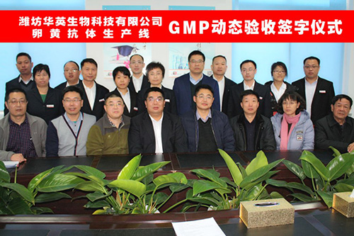 2018年2月10日 ,農業部GMP驗收專家組在山東省畜牧獸醫局、濰坊市畜牧獸醫局、濱海區農林水海局領導的陪同下, 對濰坊華英生物科技有限公司卵黃抗體生產線進行動態驗收。