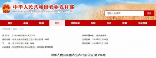 中華人民共和國農業農村部公告 第194號