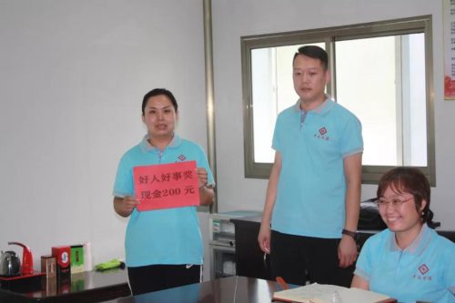 前段時(shí)間臺(tái)風(fēng)過境,濰坊多地企業(yè)受災(zāi)嚴(yán)重,消防安全事項(xiàng)尤為重要。在此期間,公司員工劉濤、季莉莉在工作時(shí),認(rèn)真仔細(xì)排查線路和倉庫貨物受損問題,將問題積極上報(bào)并妥善處理,為公司避免了巨額損失。公司領(lǐng)導(dǎo)特別重視,特在會(huì)上進(jìn)行表揚(yáng)并進(jìn)行“好人好事獎(jiǎng)”現(xiàn)金表彰,為大家樹立了很好的模范作用,并受到大家的廣泛稱贊。